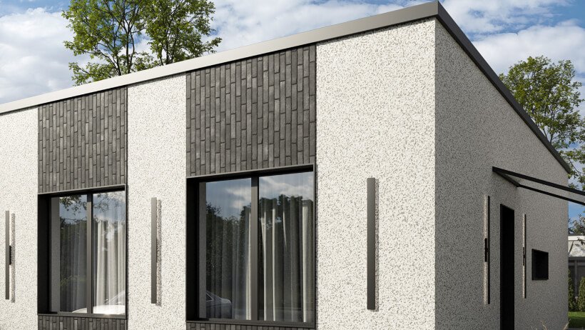 Dėmesį traukia spalvų ir medžiagų suderinamumas. Fasado apdailai parinktos kokybiškos medžiagos: silikoninis tinkas, atsparus nešvarumams, patvarus, mažai įgeriantis, pralaidus garui, elastingas ir atsparus smūgiams.