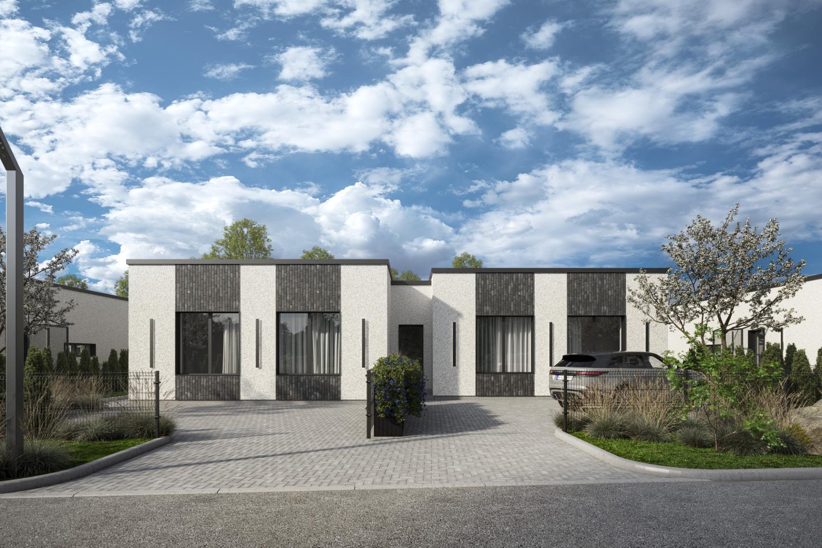 Erdvi svetainė su langais dviejose sienose, tad natūrali šviesa sklinda visu šviesiu paros metu. Kotedžai išdėstyti ne vienoje linijoje, todėl sukuriama daugiau privatumo tarp kaimynų. Itin kokybiškos fasado apdailos medžiagos: silikoninis tinkas, atsparus nešvarumams, patvarus, mažai įgeriantis, pralaidus garui, elastingas ir atsparus smūgiams. Išvesti kebeliai saulės elektrinėms ant stogo bei elektromobilio krovimo stotelėms kieme. Gatvė prie namų – asfaltuota, apšviesta ir rami.